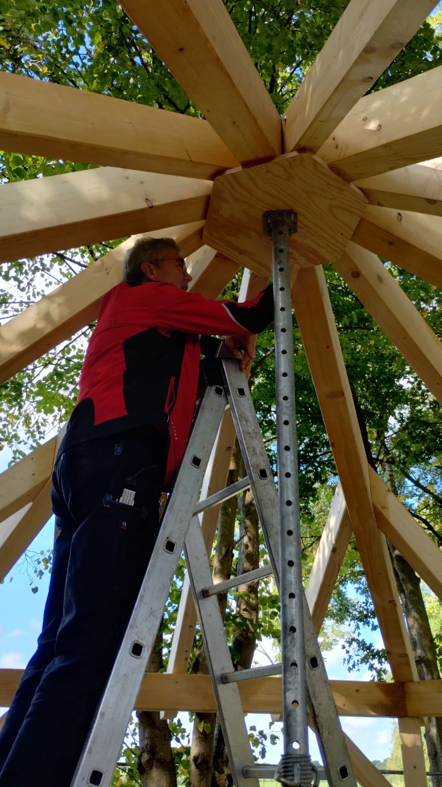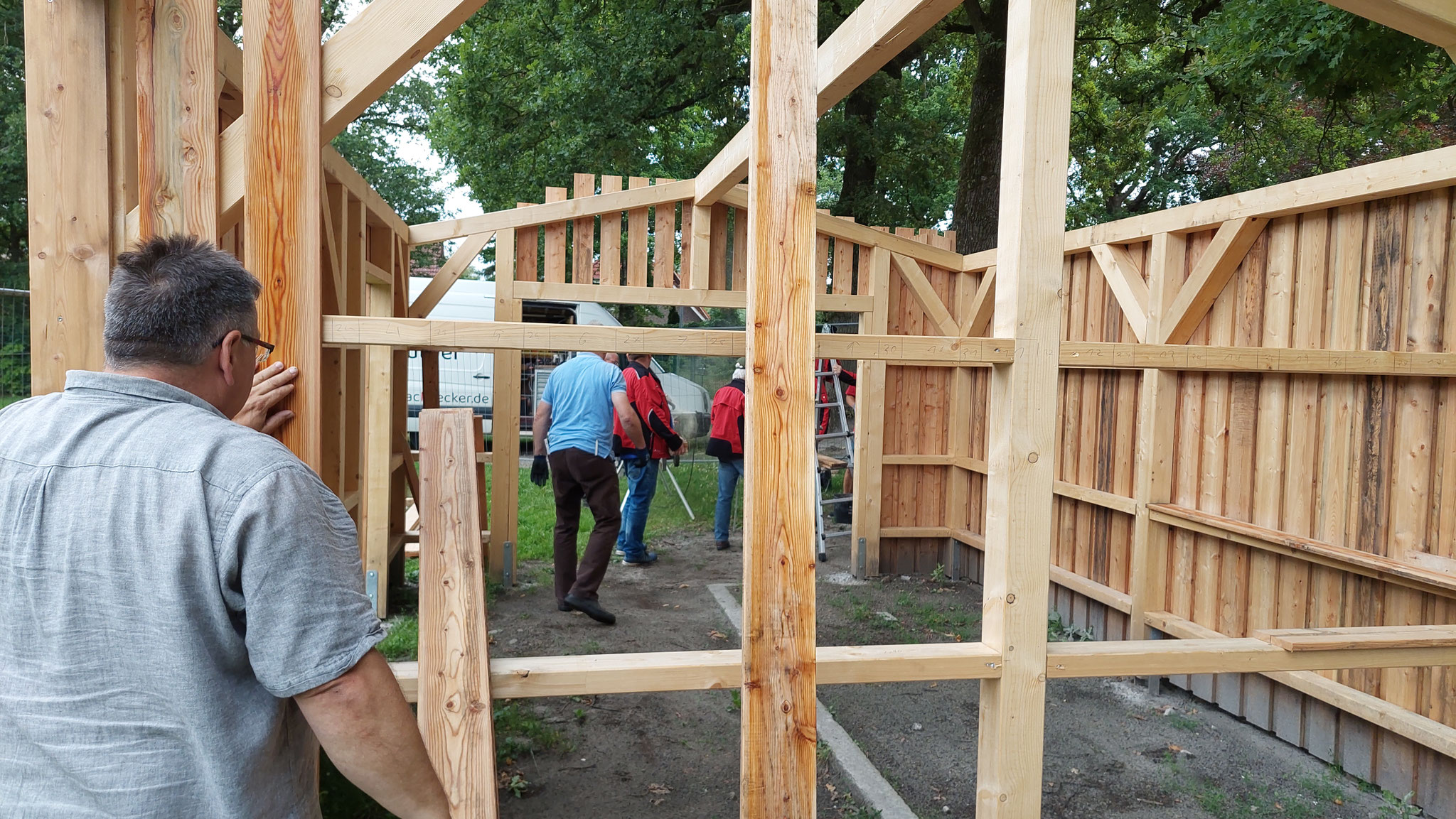 gefasst, an gleicher Stelle Ersatz und damit wieder einen Ort der Begegnung zu schaffen. Nun war guter Rat teuer, um ein Bauwerk dieser Art zu erstellen. Ausgelastete Firmen sahen sich kaum