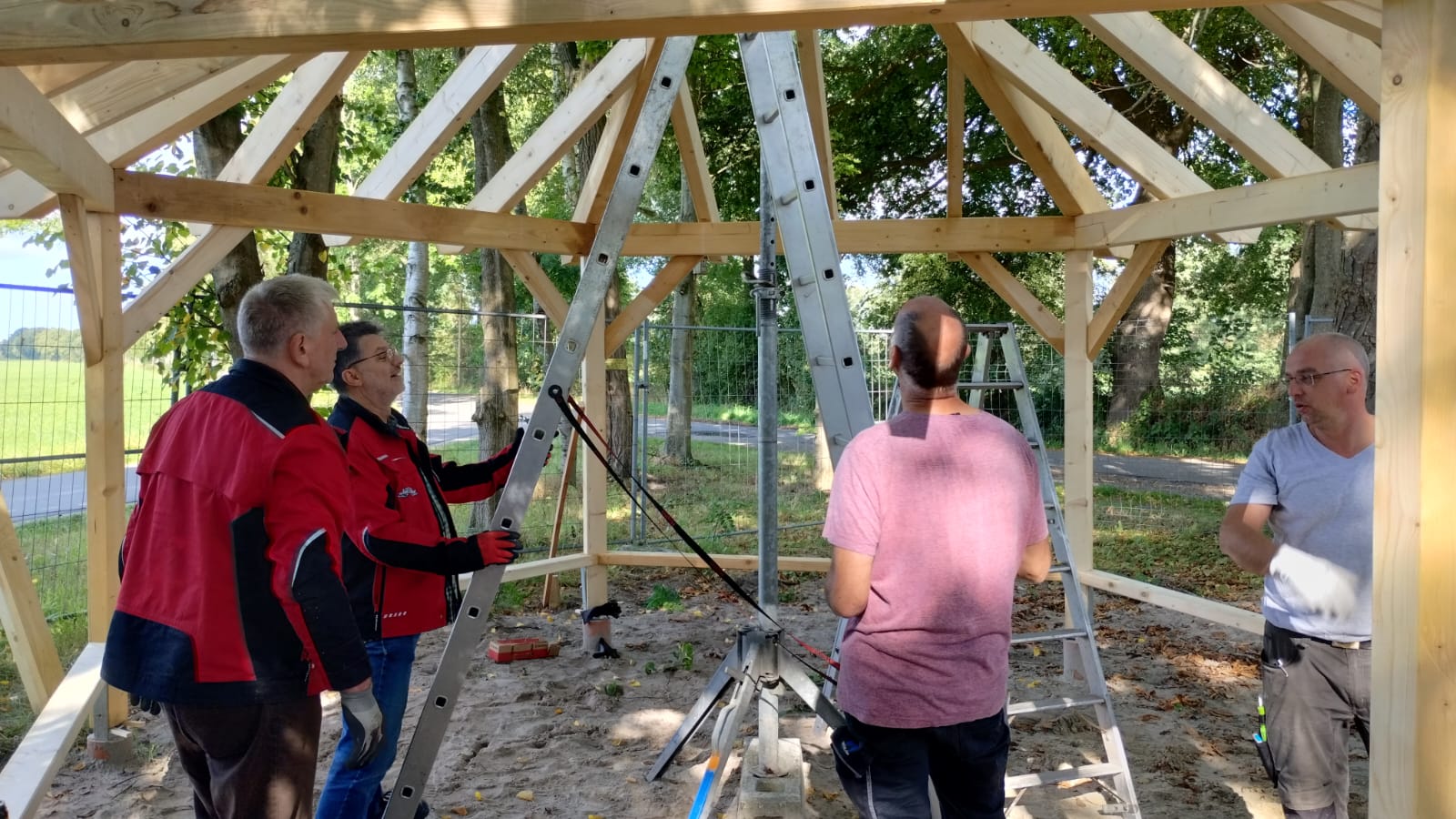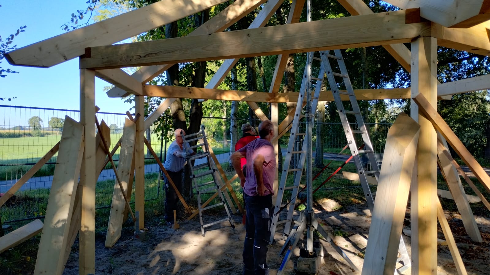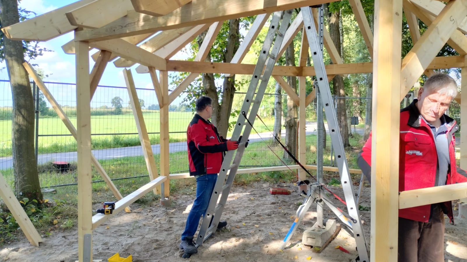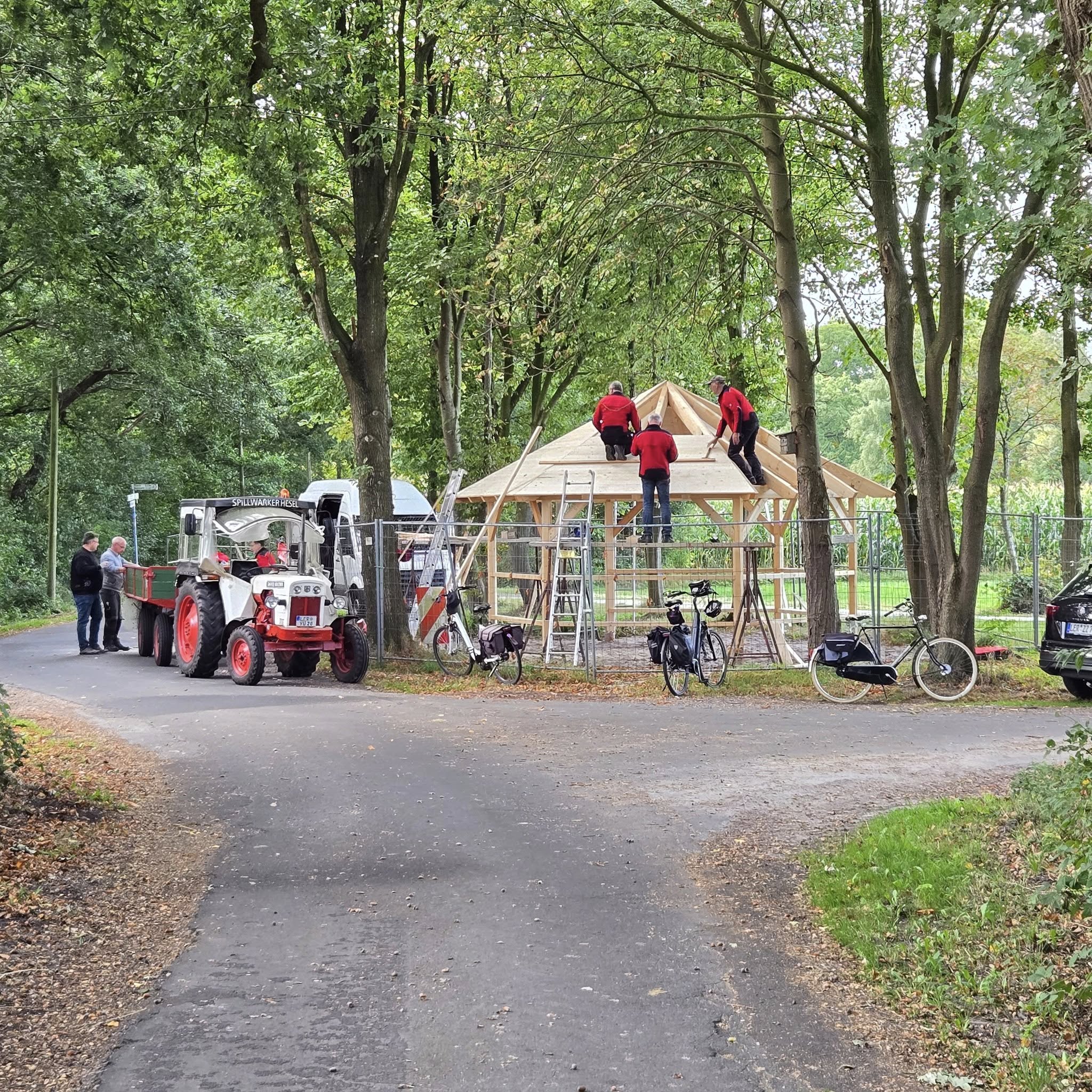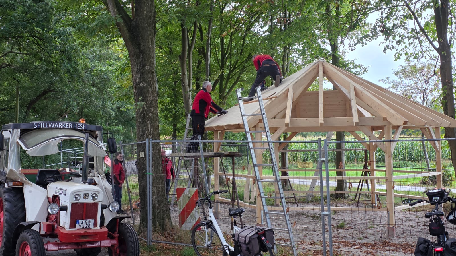 Im Juli 2025 konnten die Spillwarkers mit dem Bau einer Schutzhütte in Hesel-Kiefeld beginnen. Sie soll künftig Radfahrern und Spaziergängern einen komfortablen Auffenthaltsort bieten. Der Standort der Schutzhütte ist an der Ecke Kiefelder Straße / Weidenweg. Über den Aufbau informiert unsere Bildergalerie.
